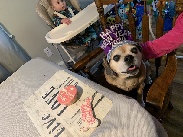 Remember the year you had puggles born on New Year’s Day? Well here’s my girl I got from you 12 years ago!! She’s been with me through two babies and is so loved!! Angela January 2020