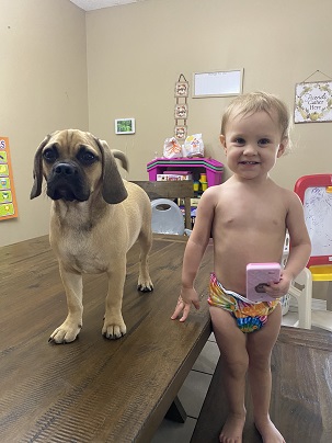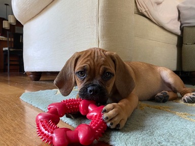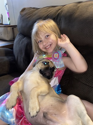 We’ve had Colt for two months now so I figured I’d send a pup date on him. He fits in quite well and is my youngest daughters best friend. They’re inseparable. He’s such a sweet and rambunctious little fella. He loves toys and chewing on everything. He keeps our old 9 year old pug young. Amy Fennell September 2020