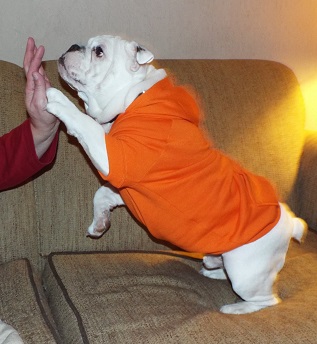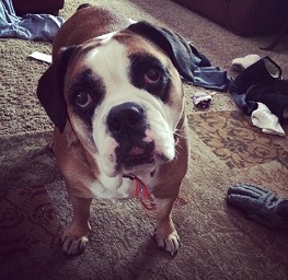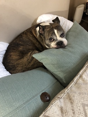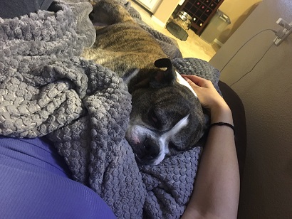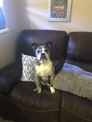 Hi! My fiancé and i wanted to send you some pictures of Cash, he’s 1/2 English bulldog 1/2 Boston terrier. He turned 9 in July and we got him from you guys. Thank you so much he’s the best thing that’s ever happened to our life. He’s the snuggliest, sweetest, silly dog. We have an incredible connection with him. He’s also extremely healthy besides some arthritis that’s beginning but that comes with age. Jessica Schug September 2018