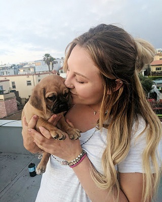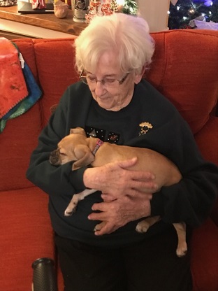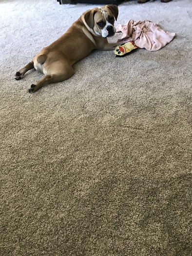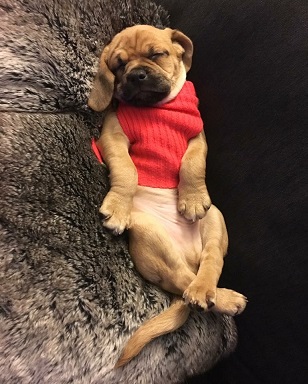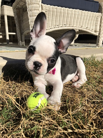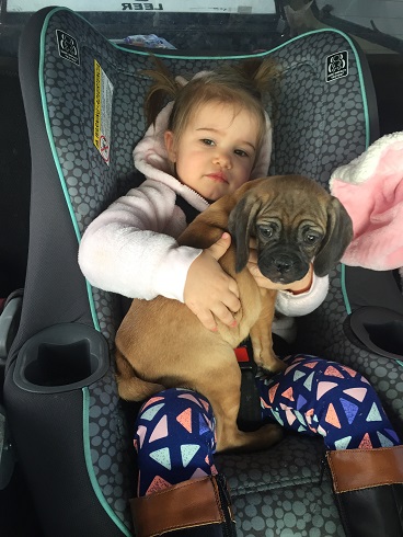 Hi Riley’s, It’s been just over a week since we picked Eloise (previously known as Cupcake) from DFW airport and she became a Texan. I thought I would send you an update. Eloise passed her vet exam with flying colors. She loves to cuddle and despite my best intentions sleeps in between my husband and I at night. In the morning she always snuggles her face in my neck for awhile longer (doesn’t seem to be a morning dog) and makes little piggy snorting sounds that are adorable. She is super fast and her size gives her the advantage when we try to catch her to take out to potty so we are still working on potty training. Everybody that sees her just melts and she is very calm even around a lot of people (think Apple Store right after Christmas). It was a rough start introducing her to our rescue pit mix (only have had her for 2 months) but they now play bite and cuddle sleep like old friends. Artemis is pretty patient with her for a 1 year old dog. I am including some photos that you can use on your website if you like. She makes us laugh everyday and we just absolutely adore her. t is easy to tell you guys took good care of her. She is very comfortable being touched and held, loves to play, and is a happy healthy puppy . Thank you The Shriver’s December 2018