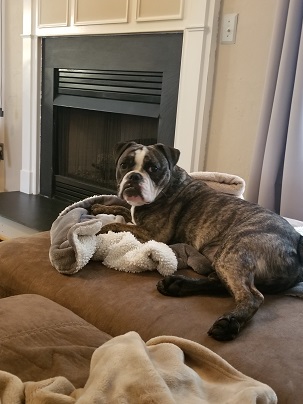 We picked up our mini bull bull from you last year about this time. You called him "Curly" and we named him Gus. He is the friendliest, funniest, and most affectionate dog I have ever met. He fits right into our family. We worried a bit about buying a puppy from so far away, but our experience with Rockin R Puppies was awesome and when we add to our canine family in the future, we hope to again find a puppy from you. I have attached some recent picture of Gus. He is just the perfect size and has all the best features of an English Bulldog. We totally adore him. The Weirs (Upper Peninsula of Michigan) December 2018