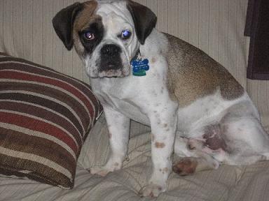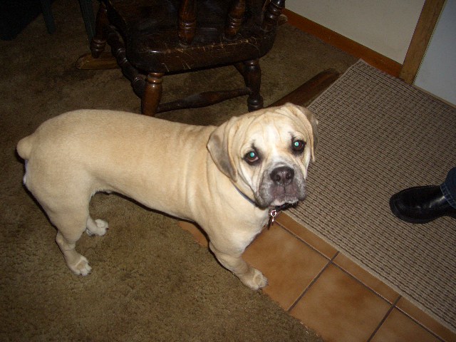 This designer mix combines the best of both the puggle (Pug/Beagle mix) and English Bulldog breeds to maximize a vigorous hybrid with the great bulldog looks, a gentle, loving disposition, and improved health. We have been breeding puggle bulls for over 2 years. We have found them to make wonderful family pets. They are a medium sized dog weighing around 35-40 pounds. They have a beautiful body composition and a variety of coloring possiblilities with unique, expressive faces.